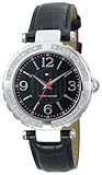 The Tommy Hilfiger Women's Fashion Leather Watch is designed with a striking scalloped stainless steel bezel with glittering Swarovski crystal accents. The timepiece is also constructed with a stainless steel case and a crocodile-pattern black leather wristband with an adjustable buckle clasp. A strong mineral window shields the black dial, which features bold silver-tone hour markers and Arabic numeral indexes at three, six, nine, and 12 o'clock. The dia...