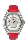 The Tommy Hilfiger Women's Fashion Leather Watch is designed with a beautiful red leather wristband and a uniquely shaped stainless steel bezel for a fashionable edge. The timepiece is also cons..